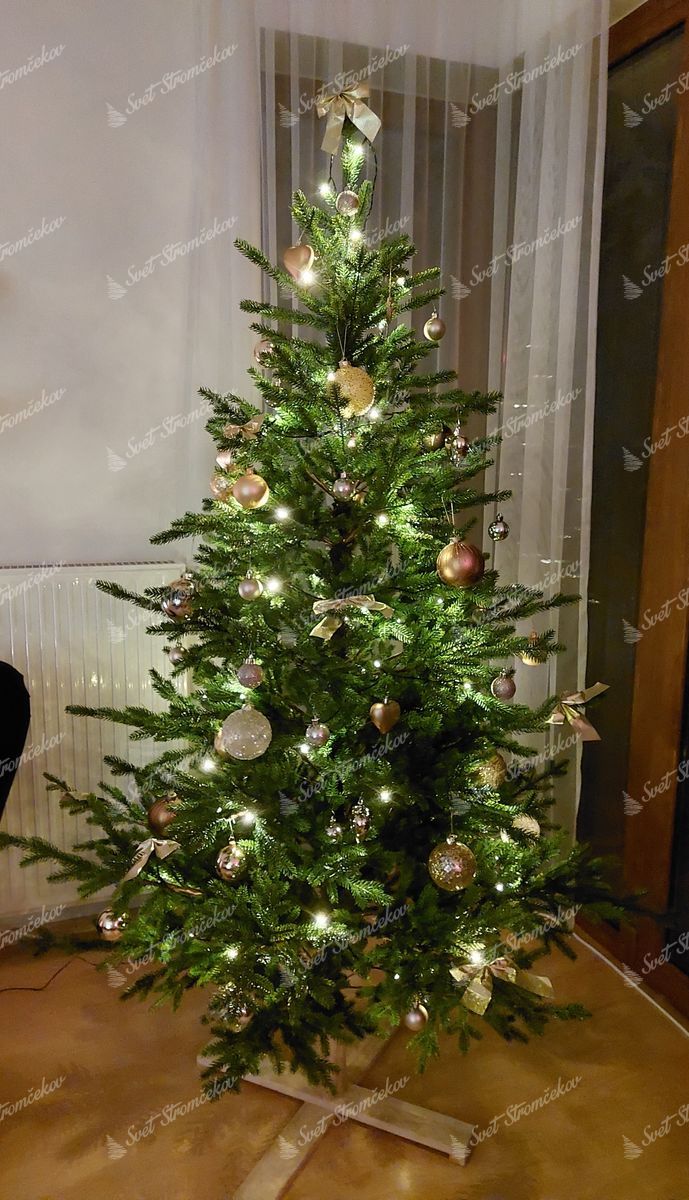 Künstlicher Weihnachtsbaum FULL 3D, Höhe 180cm, Breite 111cm, natürliche grüne Fichtennadeln 3D, Nadeltyp – 100% 3D(PE), Design – mitteldicht, Holzständer, Spitzenlänge – 20cm, Anzahl der Teile – 3