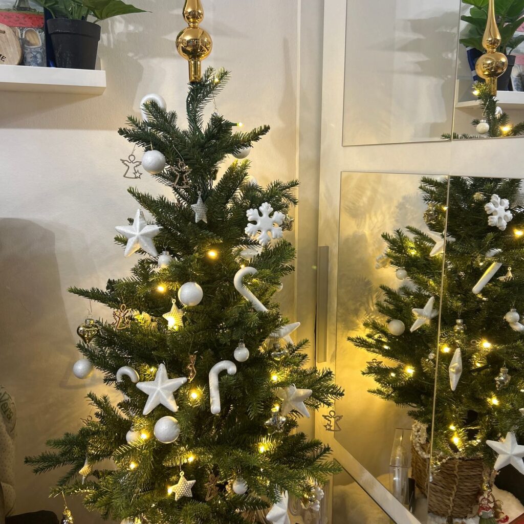 Überraschend schön – im bestmöglichen Sinne. Selbst aus der Nähe merkt niemand, dass er künstlich ist. Die LED-Lichter hatte ich mir anders vorgestellt, aber so kann man sie immerhin nach Belieben austauschen.