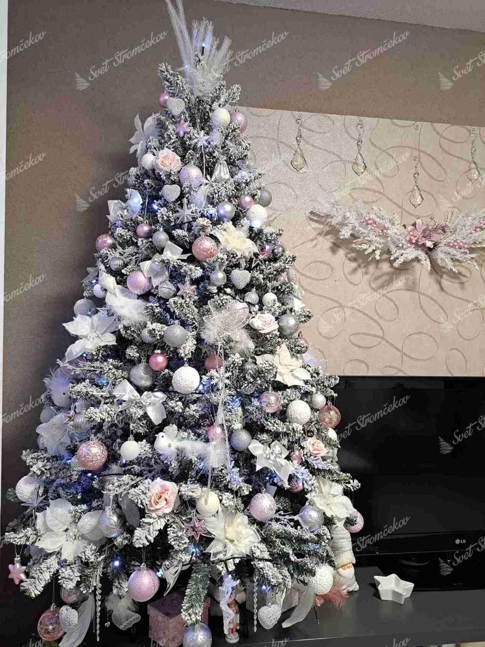 Mit Hilfe der neuesten Technologien werden nach und nach Kunstschneeschichten auf den Baum aufgetragen, ohne dass diese später vom Baum fallen. Der Baum besteht aus dunkelgrünen Nadeln, wobei die Enden der Zweige dicht beschneit sind. Für die perfekte Form des Baumes sorgt ein Regenschirm-Faltsystem, das die einzelnen Zweige an eine vorbestimmte Stelle platziert.