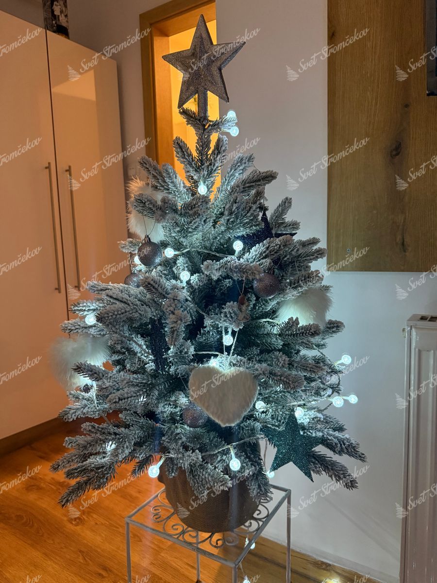 Seine weiß-grünlichen Zweige bezaubern wohl jeden, der sich nach einem eisig majestätischen Weihnachtsfest sehnt. Die 3D-Nadeln werden am gesamten Umfang des Baums durch klassische PVC-Nadeln ergänzt, die dicht zugeschneit sind. Das hochmoderne System zum Aufbringen des Kunstschnees auf den Baum sorgt dafür, dass der Schnee nicht herunterfällt.