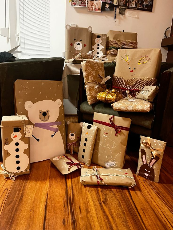 Hier dürfen bunte Motive mit Tieren, Weihnachtsmännern oder Schneemännern nicht fehlen. Wenn Sie kreativ sind, können Sie sie sogar selbst malen oder dekorieren. Wer nicht zeichnen möchte, greift einfach zu Weihnachtsstickern.